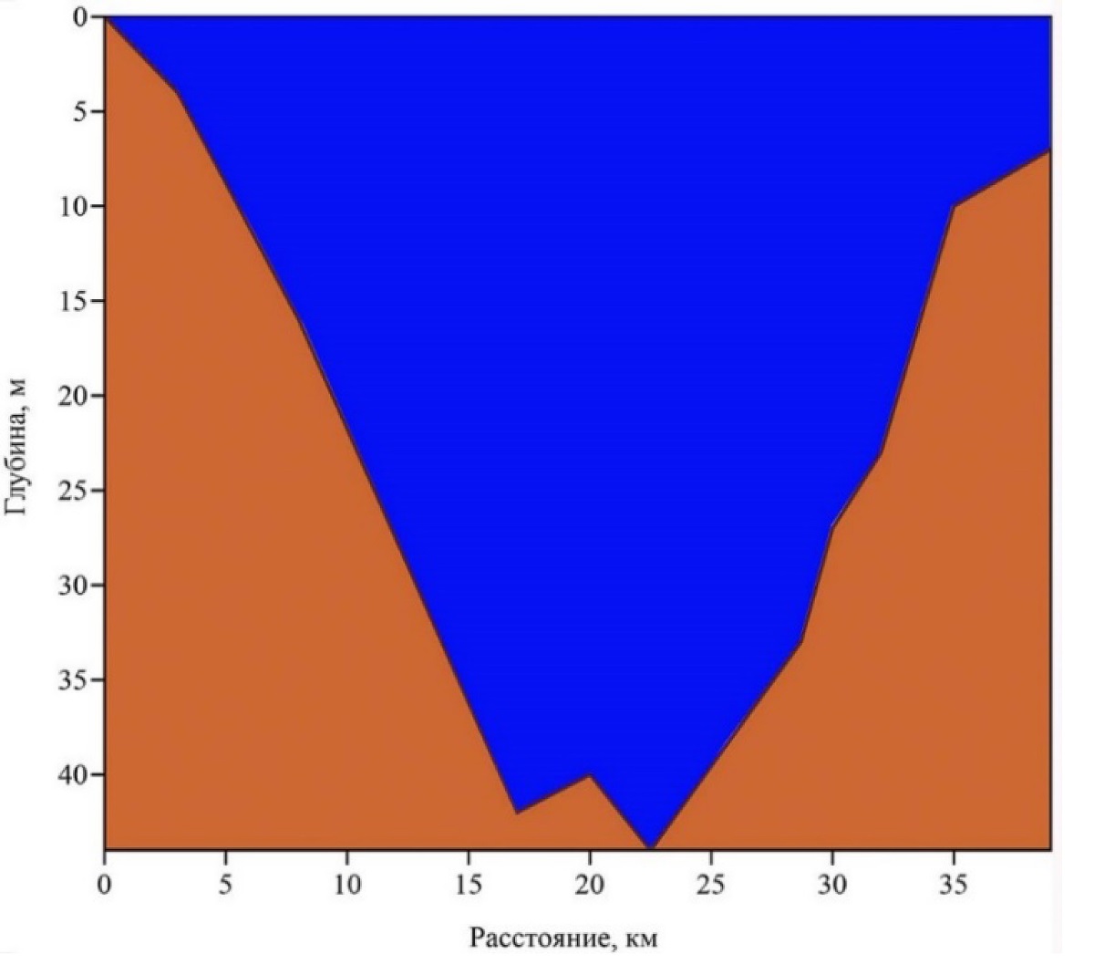 Fig. 10. Bathymetric profile of the bottom of the Northern part of the Strait of Tartary