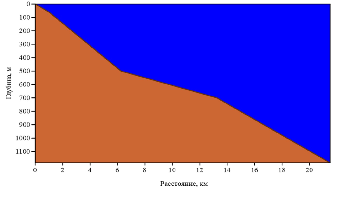 Рис. 10. Батиметрический профиль дна Северной части Татарского пролива