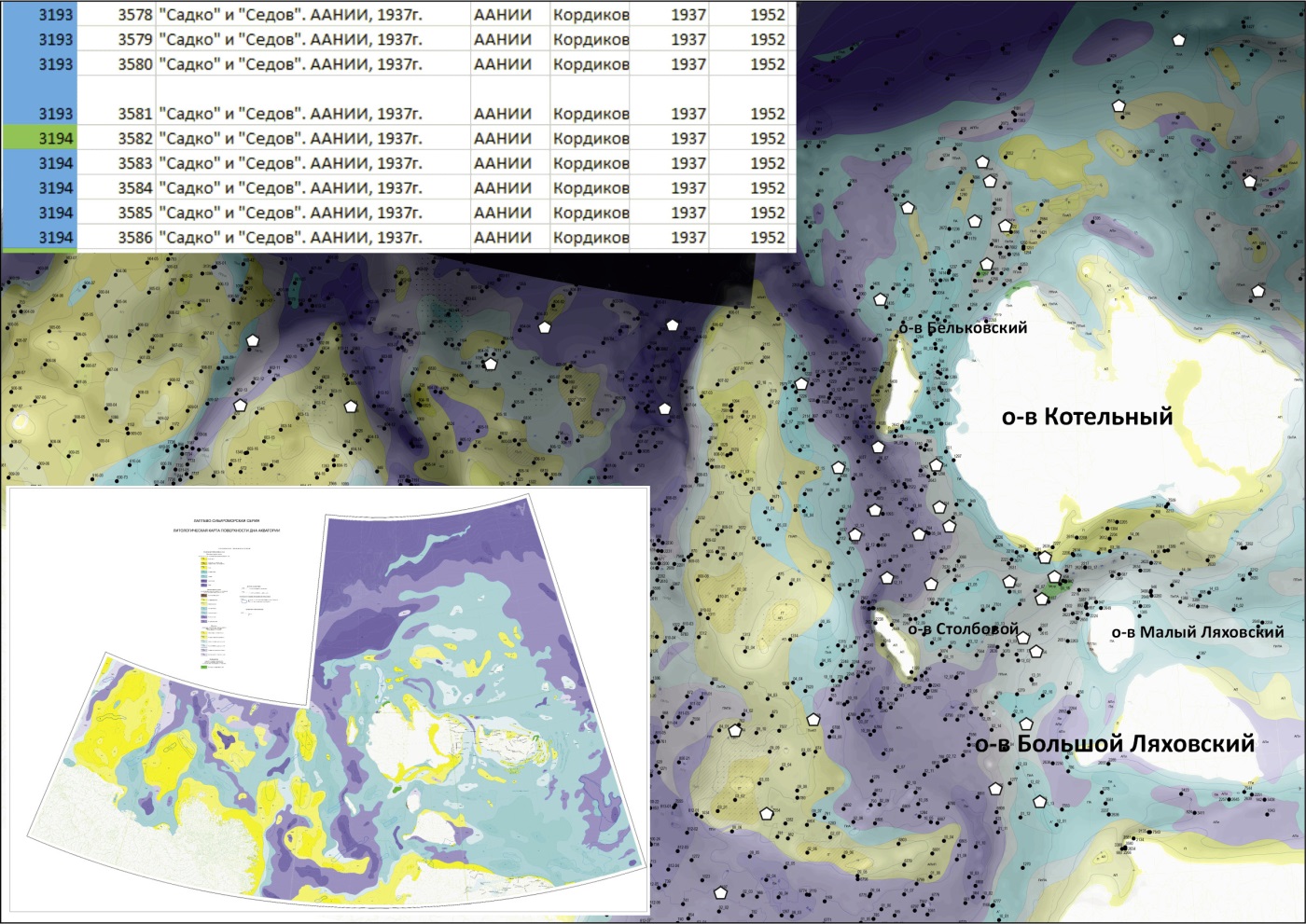 Результаты донного пробоотбора и лабораторных исследований, выполненных в сложнейших условиях зимовки, вошли в базы данных, которыми до сих пор пользуются морские геологи для составления карт поверхностных отложений [25] (рис. 5).
